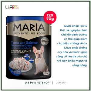 MARIA- Tuna with Salmon, Shirasu in Gravy – Thịt cá ngừ trắng, cá hồi, cá cơm